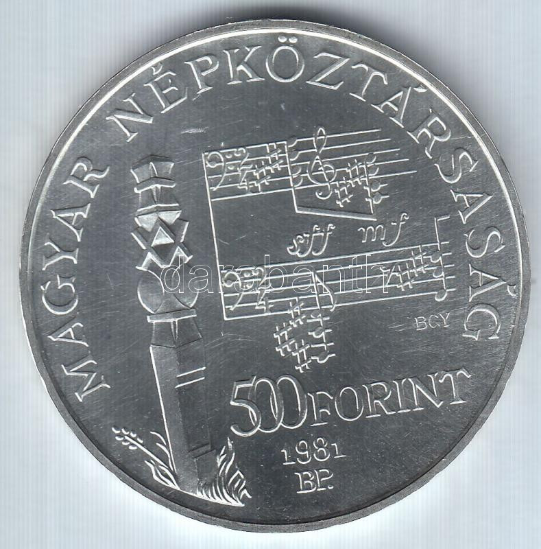 Leírás: 1981. 500Ft Ag "Bartók Béla" T:BU