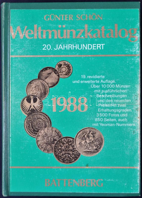 Günter Schön: Welt Münzkatalog. 20. Jahrhundert. 1988. 19. kiadás. Aug... https://www.darabanth.com/hu/204-Gyorsarveres/204.0/Numizmatika/Numizmatikai-irodalom~3/Gunter-Schon-Welt-Munzkatalog-20-Jahrhundert-1988-19-kiadas-Augsburg-Battenberg-1987-b~II819249
