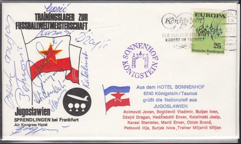 Leírás: 1974. évi labdarugó VB-n résztvevő jugoszláv csapat sztárjátékosai által dedikált boríték