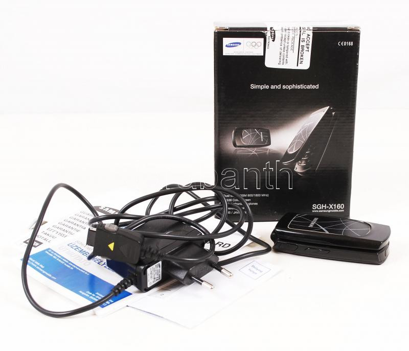 Leírás: Samsung SGH-X160 típusú használt mobiltelefon, töltővel, használati útmutatóval, benne Vodafone SIM-kártyával, működőképes