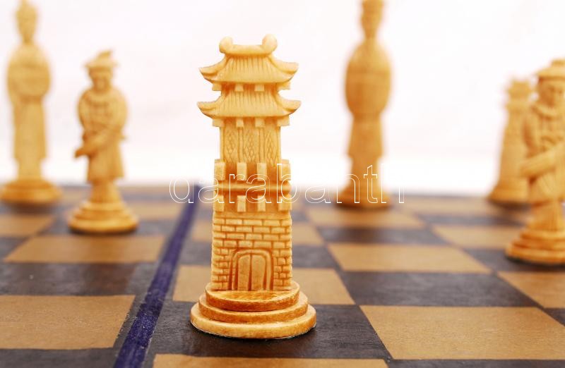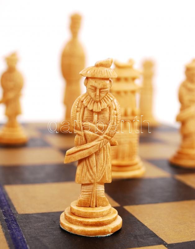 XX. sz. eleje: Kínai elefánt?-csont, faragott igényes sakk készlet. Hiánytalan, jó állapotban, saját szövet és csont dobozban / cca 1900 Chinese carved ivory? complete chess sett