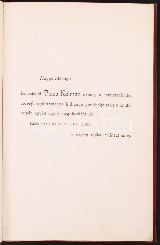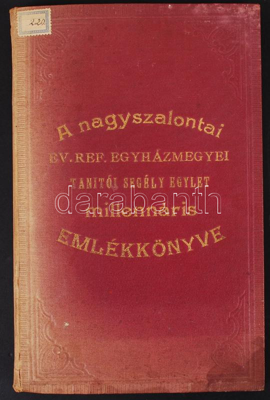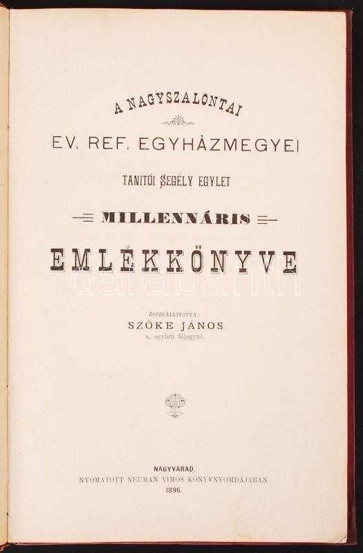 1896 A nagyszalontai református egyházmegyei tanítói segély egylet mil... https://www.darabanth.com/hu/205-Gyorsarveres/205.0/Festmeny-mutargy-papirregiseg-egyeb/Nyomtatvanyok~11/1896-A-nagyszalontai-reformatus-egyhazmegyei-tanitoi-segely-egylet-millenaris-emlekkonyve-ar~II825205
