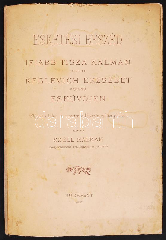 1897 Esketési beszéd ifj. Tisza Kálmán gróf és Keglevich Ilona grófnő ... https://www.darabanth.com/hu/205-Gyorsarveres/205.0/Festmeny-mutargy-papirregiseg-egyeb/Tortenelmi-dokumentumok-keziratok-erdekessegek~41/1897-Esketesi-beszed-ifj-Tisza-Kalman-grof-es-Keglevich-Ilona-grofno-eskuvojen-10p~II825209