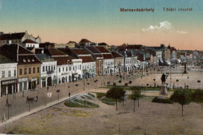 Marosvásárhely, főtér, Lukács János boltja, Lang Béla boltja, gyógyszertár, Porjes S. Sándor kiadása / square, shops, pharmacy, published by Sándor S. Porjes