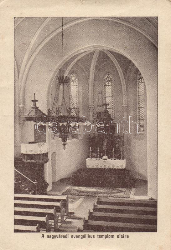 Nagyvárad Evangélikus templom oltára / Altar of the Evangelic church (... https://www.darabanth.com/hu/205-Gyorsarveres/205.0/Kepeslapok/Erdely~30006/Nagyvarad-Evangelikus-templom-oltara-Altar-of-the-Evangelic-church-small-tear~II824754