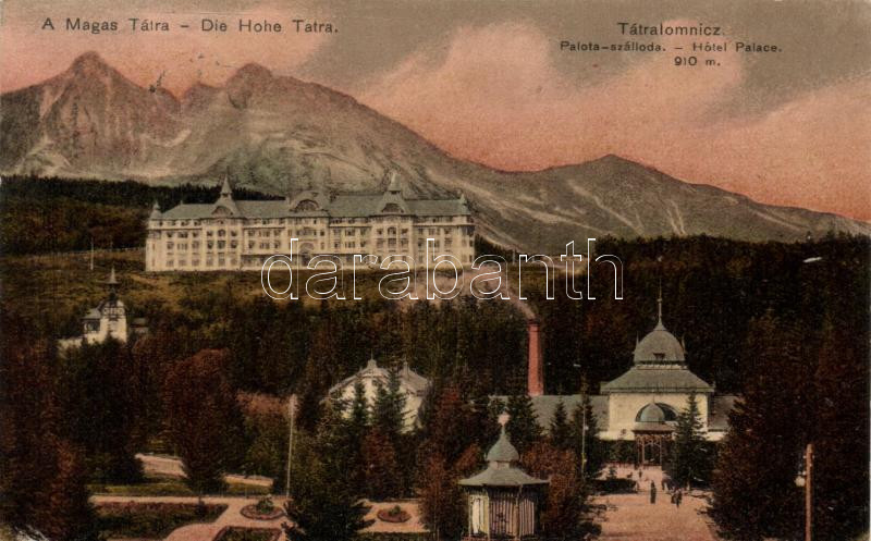 Tátralomnicz, Palota-szálloda / Hotel Palace https://www.darabanth.com/hu/205-Gyorsarveres/205.0/Kepeslapok/Felvidek~30007/Tatralomnicz-Palota-szalloda-Hotel-Palace~II824031