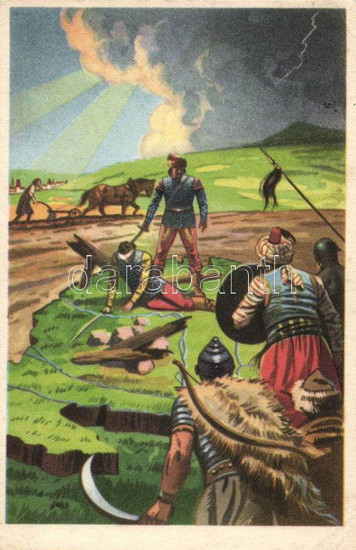 Leírás: "Évszázadokon át a Nyugat védelmében vérzett a magyar." kiadja az Ereklyés Országzászló Nagybizottsága (EK)