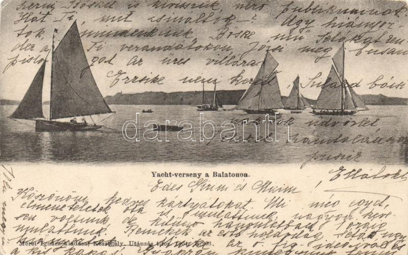 Balaton, Yacht verseny; Mérei Ignácz kiadása https://www.darabanth.com/hu/205-Gyorsarveres/205.0/Kepeslapok/Magyarorszag~30005/Balaton-Yacht-verseny-Merei-Ignacz-kiadasa~II825267
