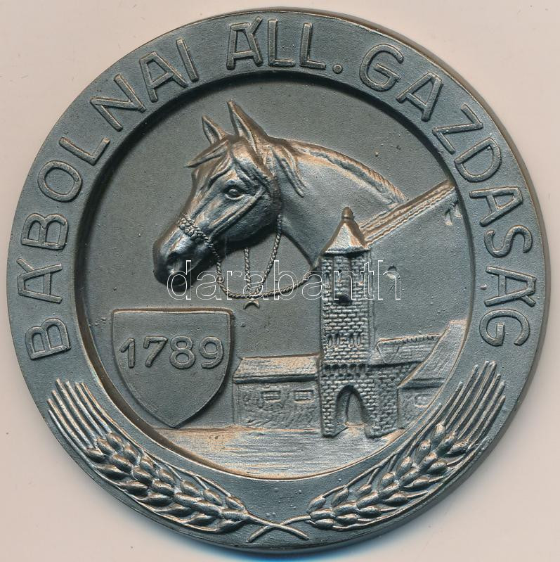 ~1980. "Bábolnai Állami Gazdaság 1789" fém plakett (70mm) T:2 https://www.darabanth.com/hu/205-Gyorsarveres/205.0/Numizmatika/Magyar-emlekveretek~20009/7E1980-Babolnai-Allami-Gazdasag-1789-fem-plakett-70mm-T2~II826163