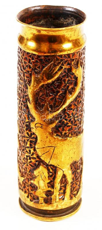Ágyúhüvelyből készített szarvasos emlékváza, réz, m:14 cm https://www.darabanth.com/hu/206-Gyorsarveres/206.0/Festmeny-mutargy-papirregiseg-egyeb/Bolhapiac~10013/Agyuhuvelybol-keszitett-szarvasos-emlekvaza-rez-m14-cm~II829565
