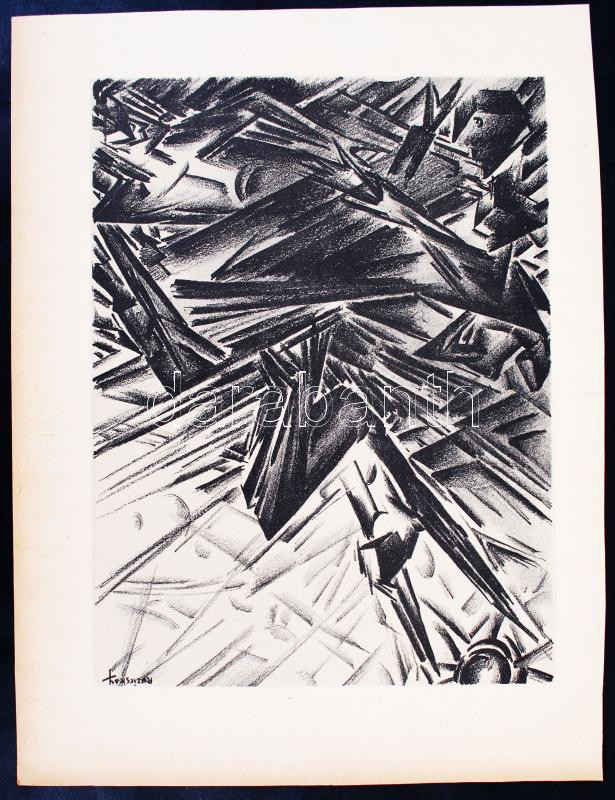 Leírás: Ruzicskay György (1896-1993): Zuhanás. Litográfia, jelzett, 18x25 cm