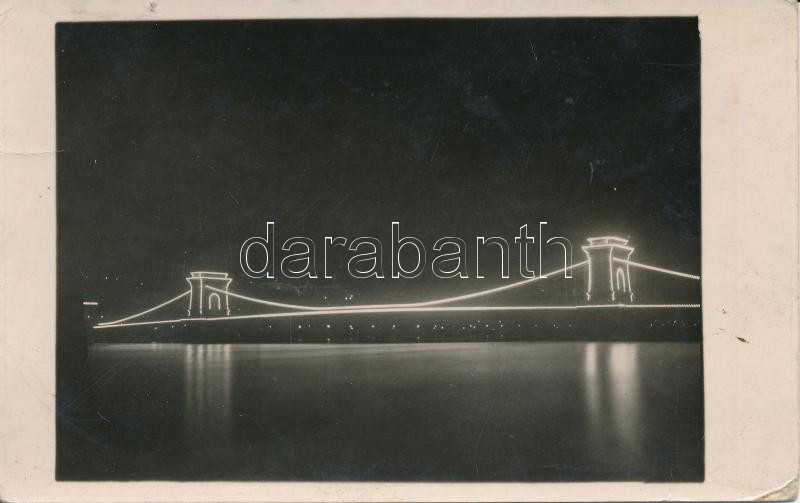 1937 Budapest, a Lánchíd fényrajza privát fotóképeslapon, 14x9 cm https://www.darabanth.com/hu/206-Gyorsarveres/206.0/Festmeny-mutargy-papirregiseg-egyeb/Foto~10022/1937-Budapest-a-Lanchid-fenyrajza-privat-fotokepeslapon-14x9-cm~II828444