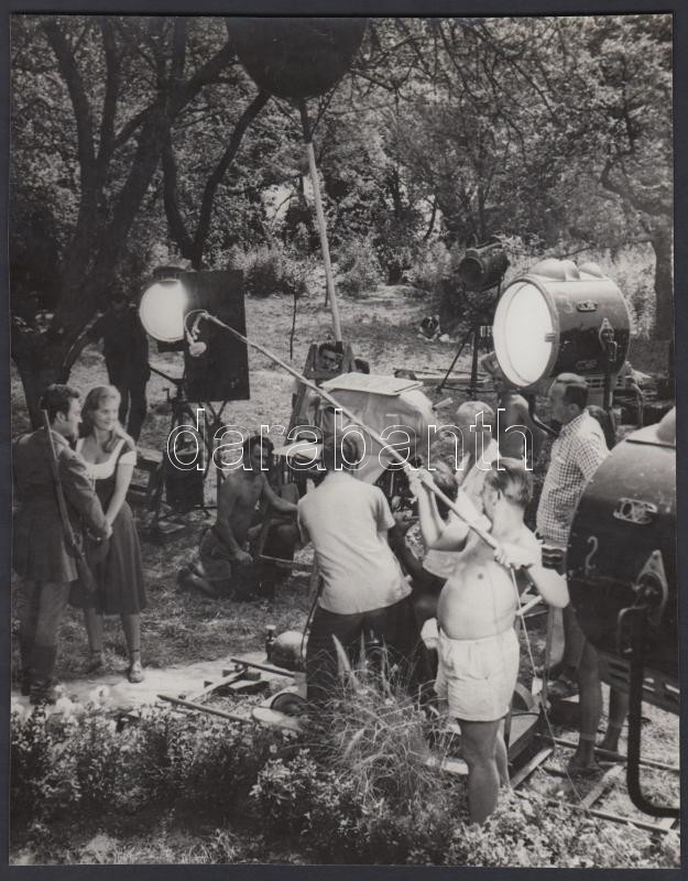 Leírás: 1962-1963 Bojár Sándor (1914-2000) riportképe az Aranyember forgatásáról, 22x17 cm