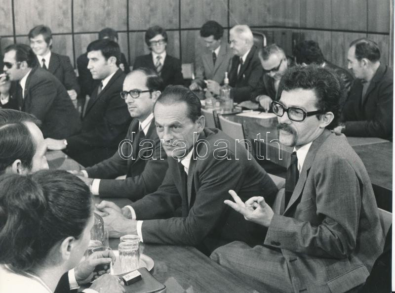 1975 Kónya Kálmán (1926-1997): Értekezlet, szocreál életkép, jelzetlen, bemutatva a Magyarország ma című fotókiállításon 1975-ben, a Magyar Munkásmozgalmi Múzeumban, publikálva a kiállítás katalógusában, 18x24 cm