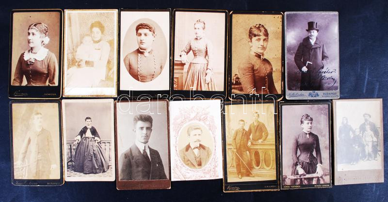 Leírás: cca 1880-1920 Régi, keményhátú műtermi fotók, vegyesen, 13 db, 10x6 cm