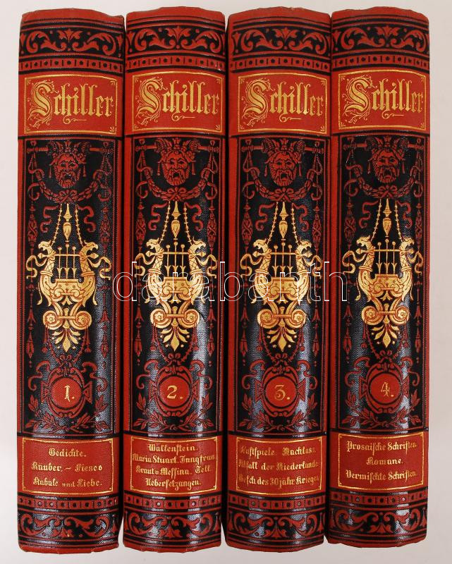 Schillers sämtliche Werke I.-IV. Stuttgart, 1888. Gothaischen Verlag. ... https://www.darabanth.com/hu/206-Gyorsarveres/206.0/Festmeny-mutargy-papirregiseg-egyeb/Konyvek-Egyeb-ritkasagok~10037/Schillers-samtliche-Werke-I-IV-Stuttgart-1888-Gothaischen-Verlag-Aranyozott-szep-allapotu-~II832568