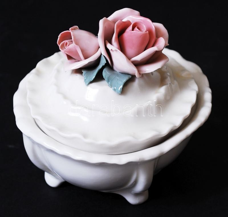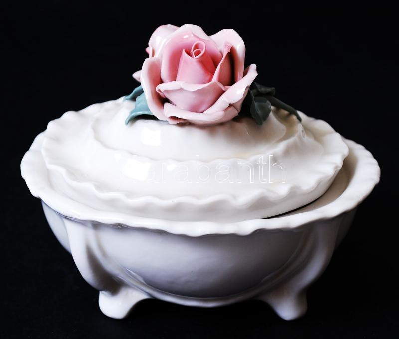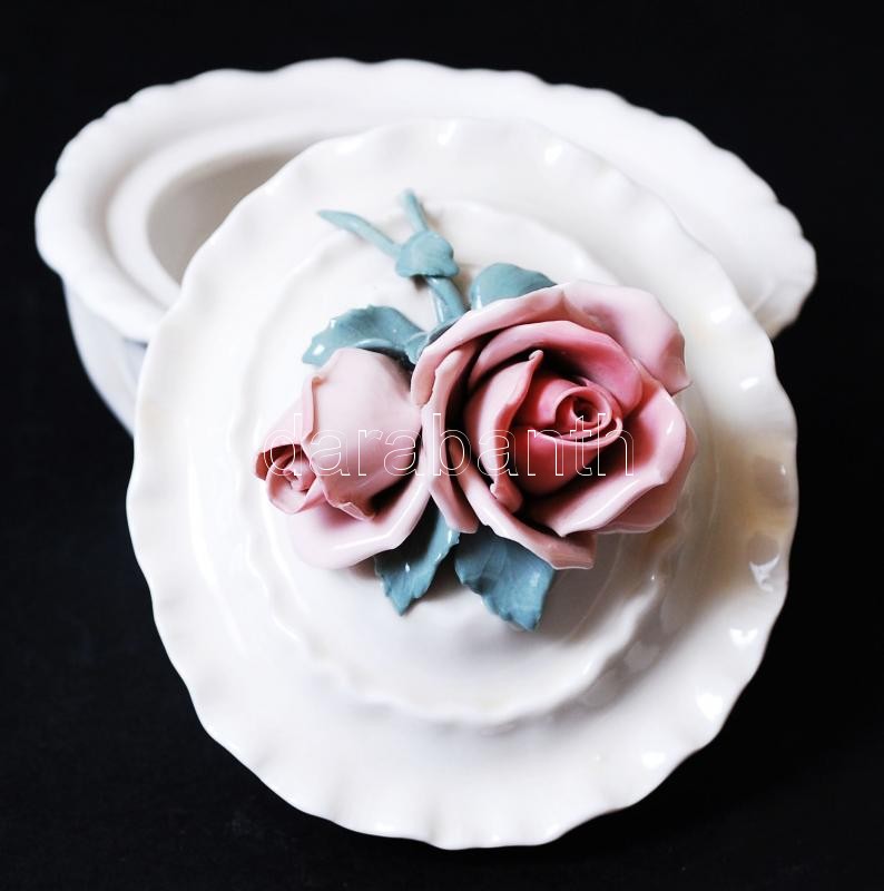 Leírás: ENS bonbonier, kézzel festett, jelzett, apró sérülés a rózsán, 11×8 cm, m:7 cm /Handpainted ENS chinaware bonbonier (small fault)