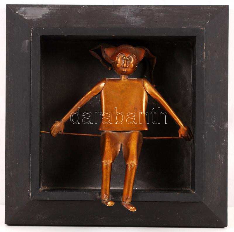 Leírás: Máté János (1938-): Bohóc. Réz lemez, jelzés nélkül, sérült, m:19 cm