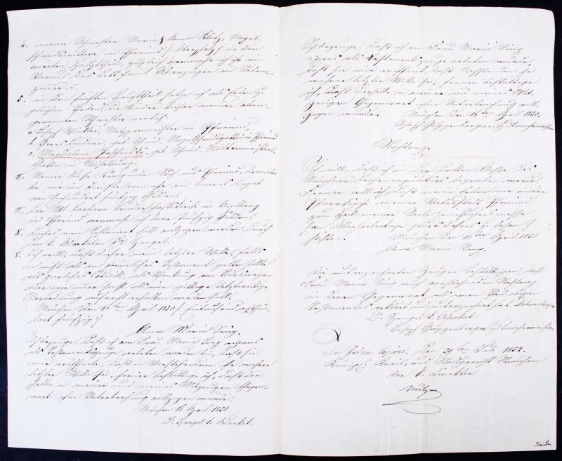 Leírás: 1852 Német nyelvű irat Bajorországból 15 krajcáros kontrollszignettával, oroszlános szárazpecséttel, 4p