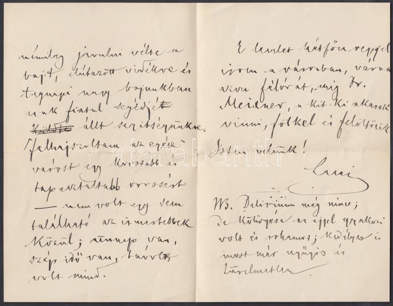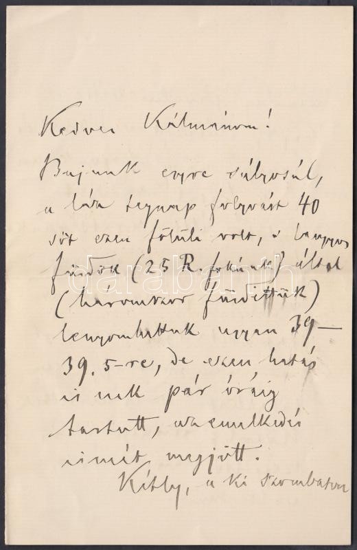 1886 Arany László saját kézzel írt levele sógorának Szél Kálmánnak, melyben lánya Szél Piroska súlyos betegségéről, haldoklásáról tudósít. 3 beírt oldal