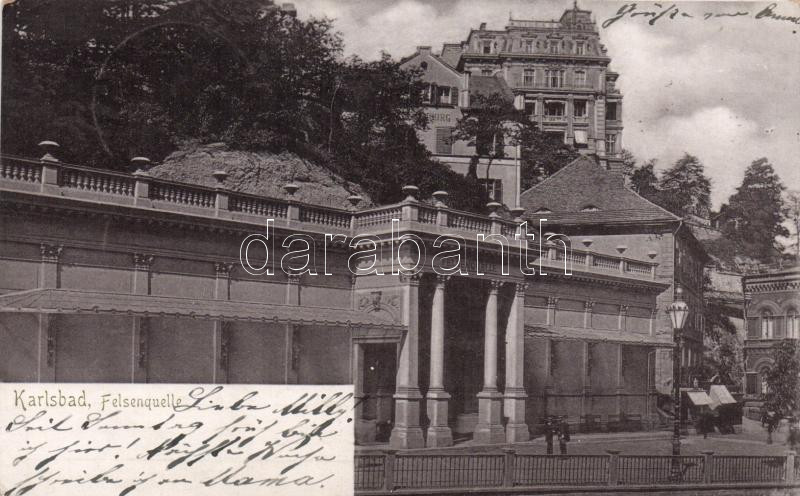 Karlovy Vary, Karlsbad; Felsen fountain https://www.darabanth.com/hu/206-Gyorsarveres/206.0/Kepeslapok/Cseh-Koztarsasag~5000381/Karlovy-Vary-Karlsbad-Felsen-fountain~II831036