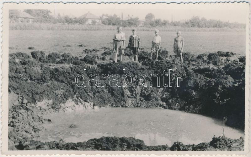 Leírás: Budapest XVII. Rákoscsaba, az orosz légitámadás bombabecsapódásának helye, fotó