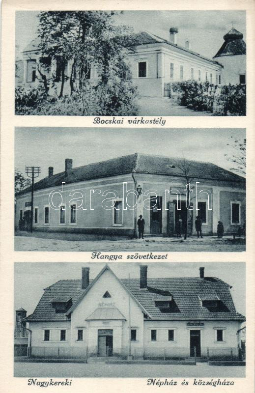 Nagykereki, Bocskai-várkastély, Hangya, népház és községháza https://www.darabanth.com/hu/206-Gyorsarveres/206.0/Kepeslapok/Magyarorszag~3000006/Nagykereki-Bocskai-varkastely-Hangya-nephaz-es-kozseghaza~II829284