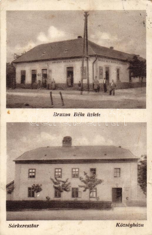 Leírás: Sárkeresztúr, Bruzsa Béla üzlete, községháza (fa)