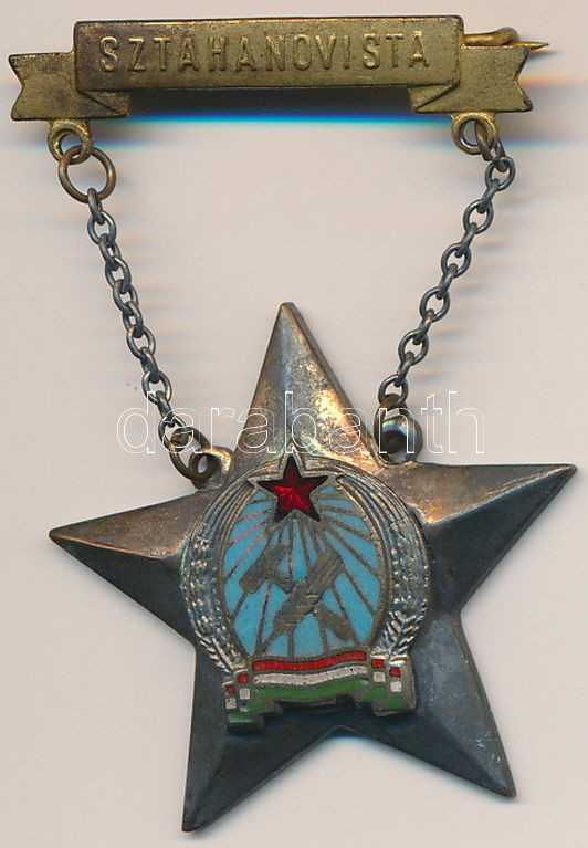 Leírás: ~1950. "Sztahanovista" zománcozott kitüntetés T:2
