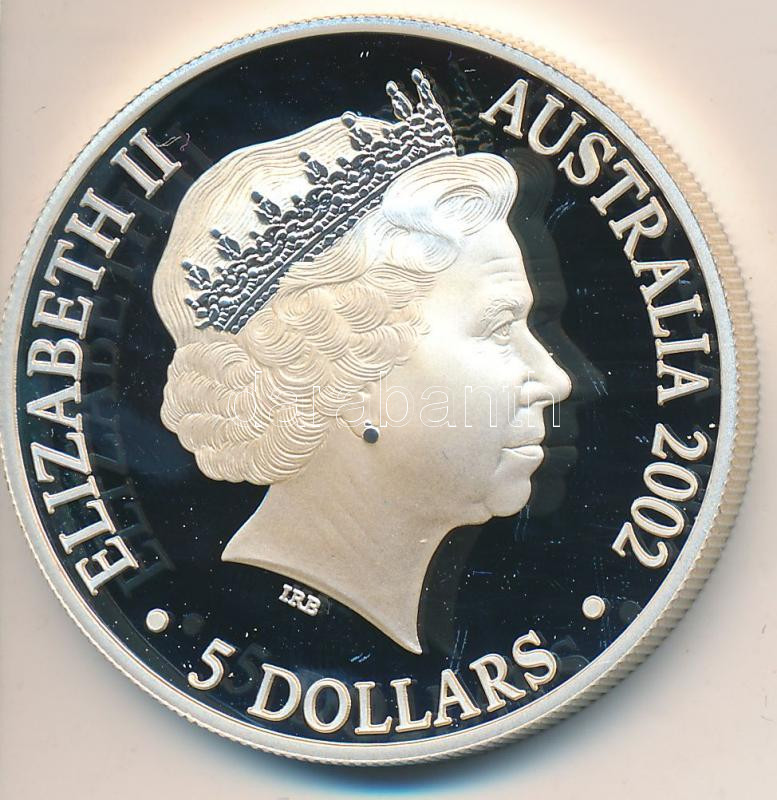 Ausztrália 2002. 5$ Ag "Erzsébet királynő" dísztokban, tanúsítvánnyal (1.oz/0.999) T:PP