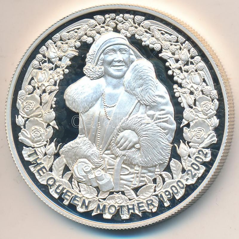 Australia 2002. 5 Dollars Ag "The Queen Mother 1900-2002" in original box and with certificate (1.oz/0.999) C:PP
