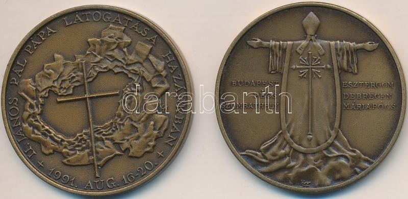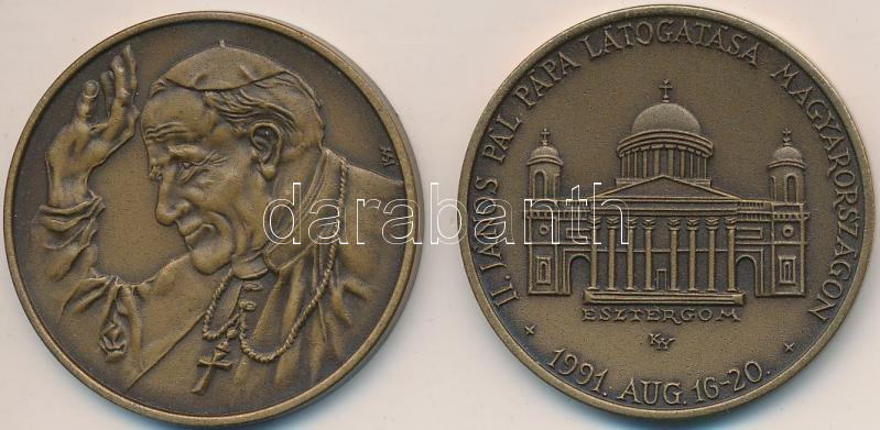 Kiss György (1943-) 1991. "II. János Pál pápa látogatása - Esztergom" Br emlékérem (42,5mm) + "II. János Pál látogatása hazánkban" Br emlékérem (42,5mm) T:1