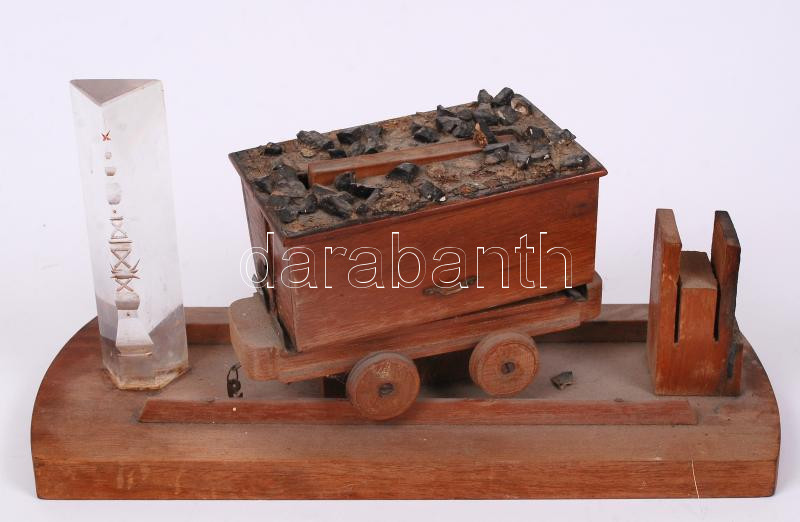 Leírás: Bányász asztali cigaretta és gyufa tartó, fa-műanyag, m:15 cm, h:28 cm