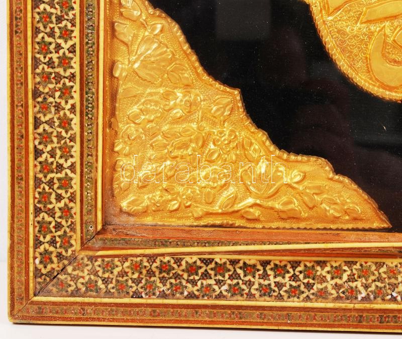 Leírás: Régi falra akasztható Korán idézet bársony és aranyozott fafaragás / Old Koran quote on velvet 43x54 cm