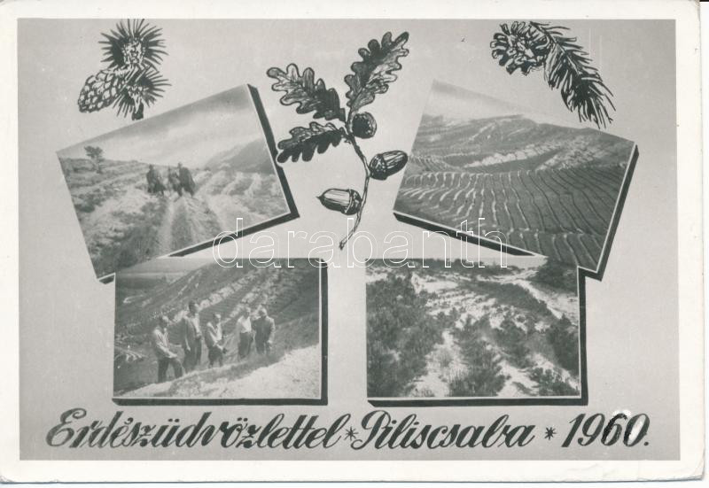 Leírás: 1960. aug. 8. Dévényi András által küldött Erdészüdvözlet Piliscsabáról, 9x13 cm