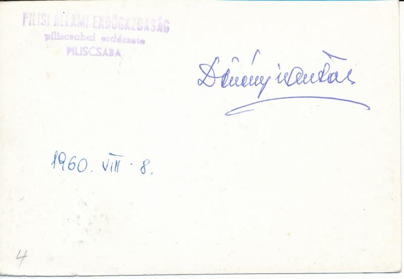 1960. aug. 8. Dévényi András által küldött Erdészüdvözlet Piliscsabáró... https://www.darabanth.com/hu/207-Gyorsarveres/207.0/Festmeny-mutargy-papirregiseg-egyeb/Foto~600018/1960-aug-8-Devenyi-Andras-altal-kuldott-Erdeszudvozlet-Piliscsabarol-9x13-cm~II837639