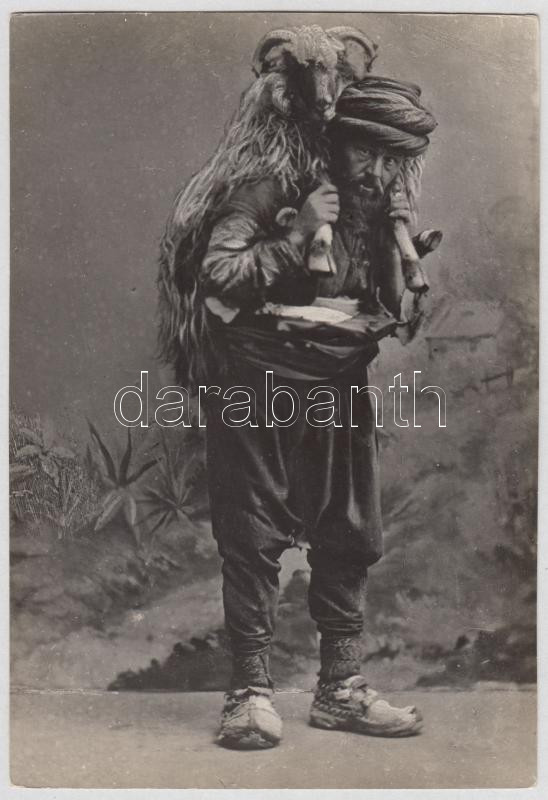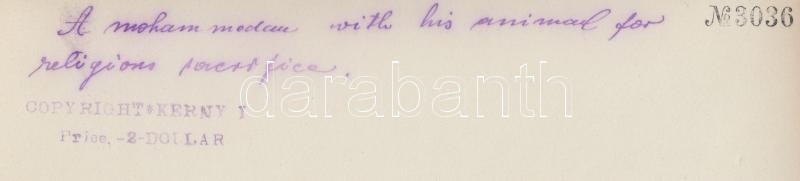 Leírás: cca 1900-1910 Kerny István (1879-1963): Balkáni mohamedán gazda kedvenc állatával, pecséttel jelzett vintage fotó, 23x16cm