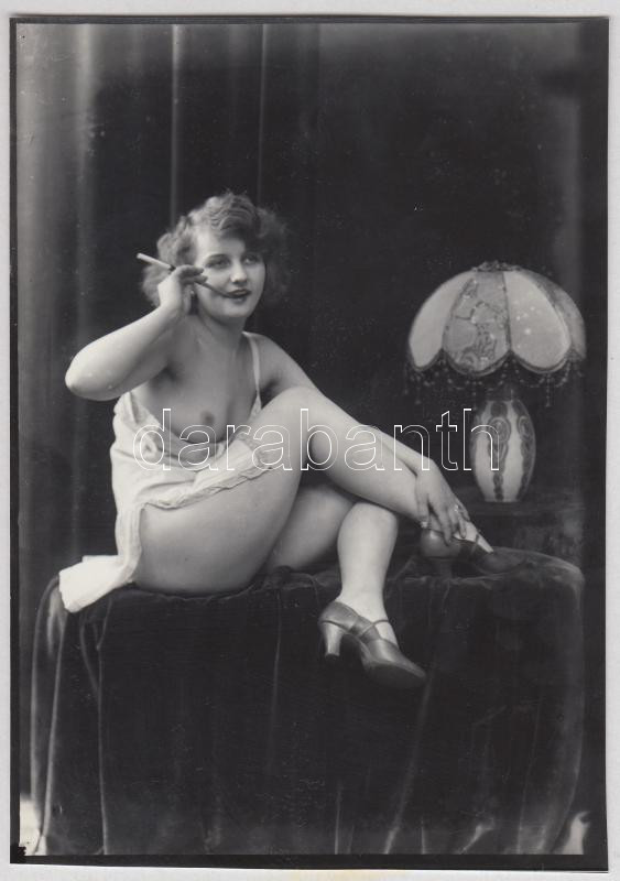 cca 1920-1930 Demeter Károly (1892-1983): Cigarettával, finom párizsi erotika , a szerző eredeti üveglemez negatívjáról készített későbbi kontakt másolat, 17x12 cm /
