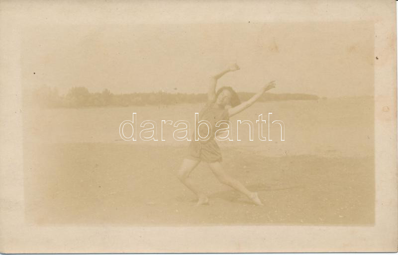 Leírás: cca 1920 Szentpál Olga Vízparti tánca, jelzetlen, Szentpál Olga hagyatékából, fotóképeslap, 9x14 cm