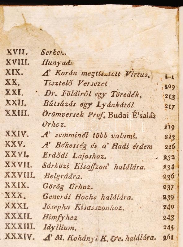 Csokonai Vitéz Mihály: Alkalmatosságra irt versek. Nagy-Váradon, 1805. Máramarosi Gottlieb Antal. VIII+318+(2)p. Első kiadás! Későbbi félbőr kötésben. (Egy lap részben pótolt)