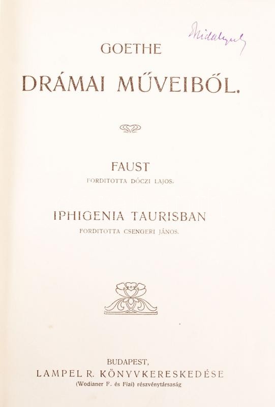 Goethe drámai műveiből: Faust, fordította Dóczi Lajos; Iphigenia Tauri... https://www.darabanth.com/hu/207-Gyorsarveres/207.0/Festmeny-mutargy-papirregiseg-egyeb/Konyvek-Egyeb-ritkasagok~600040/Goethe-dramai-muveibol-Faust-forditotta-Doczi-Lajos-Iphigenia-Taurisban-forditotta-Csenger~II838617
