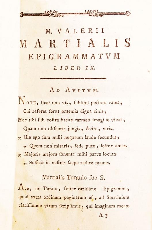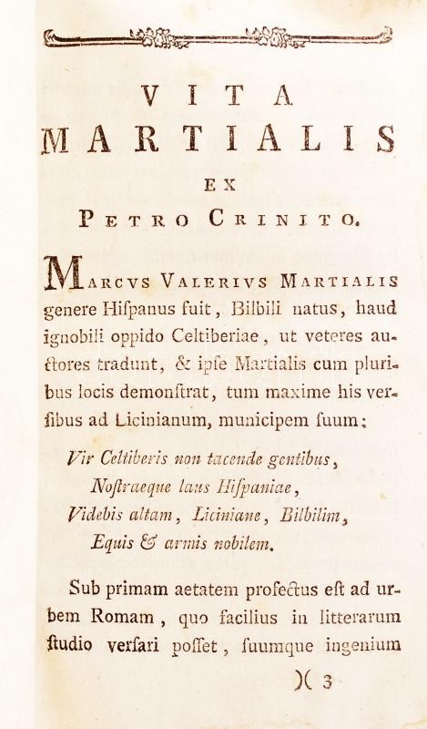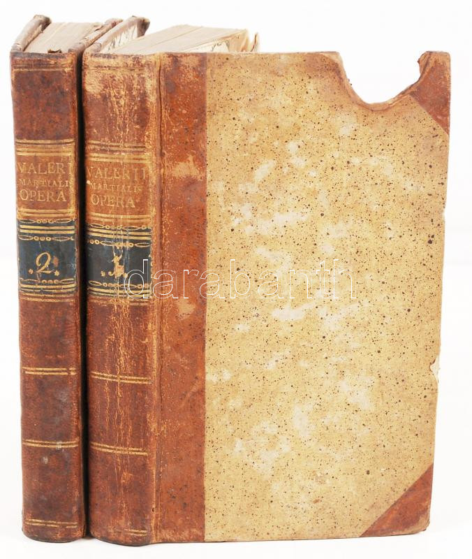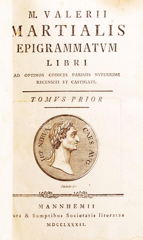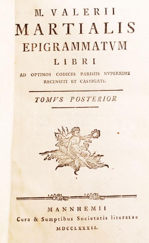 M. Valerii Martialis: Epigrammatum Libri. Ad optimos codices parisiis nuperrime recensiti et castigati. I.-II. Mannhemii, 1782. Cura & Sumptibus Societatis literae., Korabeli félbőr kötésben, az első borítón sérülés, egyébként kifogástalan állapotban / In half leather binding, damage on first cover
