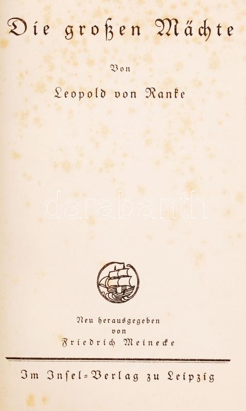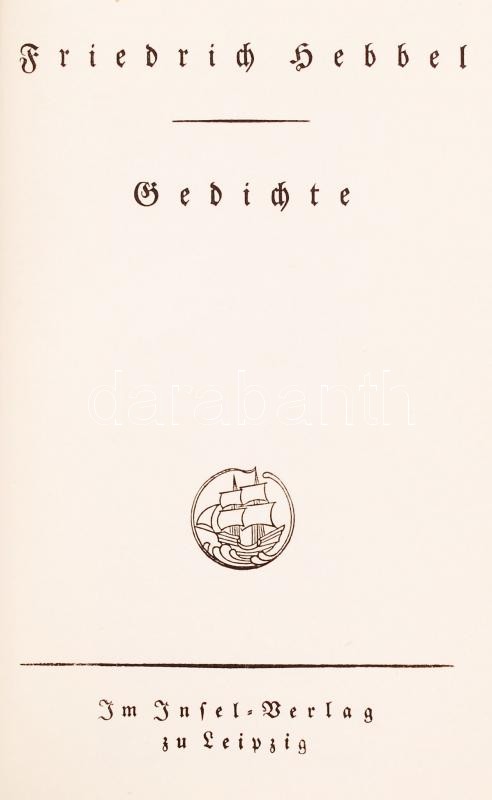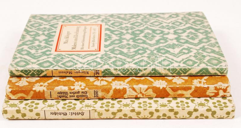 3 db könyv-Hebbel, Friedrich: Gedichte. Leipzig, Insel-Verlag; Klinger, Max: Malerei und Zeichnung. Leipzig, Insel-Verlag; von Ranke, Leopold: Die großen Mächte. Leipzig, Insel-Verlag. Kiadói kartonált kötés, jó állapotban.