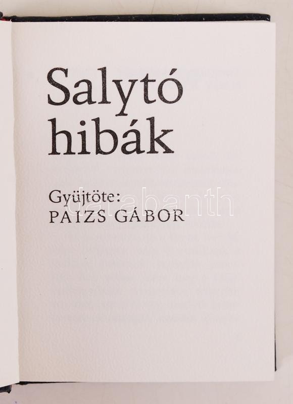 Leírás: "Paizs Gábor: Salytó hibák." Debrecen, 1983, Lapkiadó Vállalat. Minikönyv, 68. számozott példány, illusztrált, kiadói egészvászon kötés, újszerű állapotban.