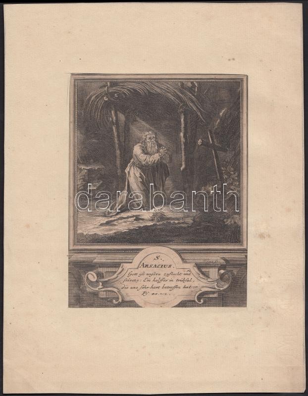 Leírás: XIX. század. St. Arsacius. Rézmetszet, papír, 20*26 cm.