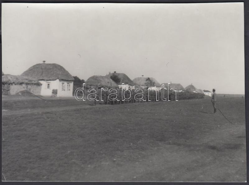 1942 Thöresz Dezső (1902-1963): A zászlóalj szemlézése. A 2. magyar hadsereg kivonulása a Don-kanyarhoz. A szerző az oda utat fényképezte, kb. 130-150 eredeti negatív őrzi a katonák harctérre vonulását, ez a kép mai másolat a gyűjteményben található eredeti negatívról, 12x17 cm