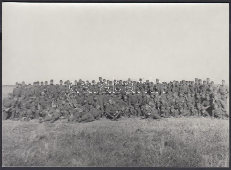 1942 Thöresz Dezső (1902-1963): Csoportkép. A 2. magyar hadsereg kivonulása a Don-kanyarhoz. A szerző az oda utat fényképezte, kb. 130-150 eredeti negatív őrzi a katonák harctérre vonulását, ez a kép mai másolat a gyűjteményben található eredeti negatívról, 12x17 cm