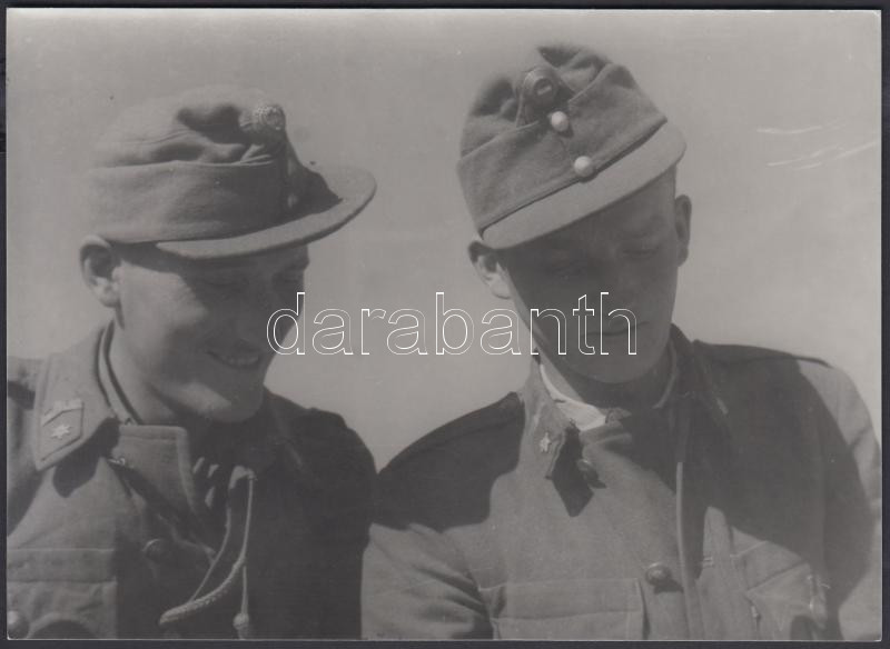 1942 Thöresz Dezső (1902-1963): Levelet kaptam. A 2. magyar hadsereg kivonulása a Don-kanyarhoz. A szerző az oda utat fényképezte, kb. 130-150 eredeti negatív őrzi a katonák harctérre vonulását, ez a kép mai másolat a gyűjteményben található eredeti negatívról, 12x17 cm