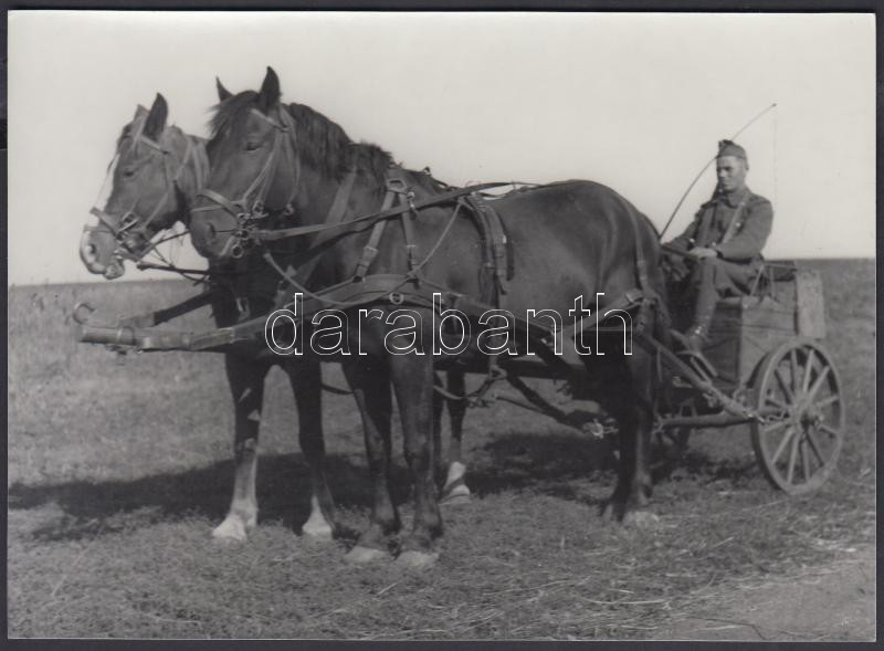 1942 Thöresz DezsÅ‘ (1902-1963): Társzekéren. A 2. magyar hadsereg kivonulása a Don-kanyarhoz. A szerzÅ‘ az oda utat fényképezte, kb. 130-150 eredeti negatÃv Å‘rzi a katonák harctérre vonulását, ez a kép mai másolat a gyűjteményben található eredeti negatÃvról, 12x17 cm cm