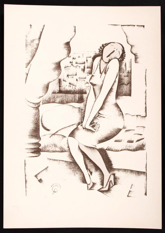Leírás: Molnár C. Pál (1894-1981): Ébredés, kis szériás ofszet-karton, 29.5x21 cm